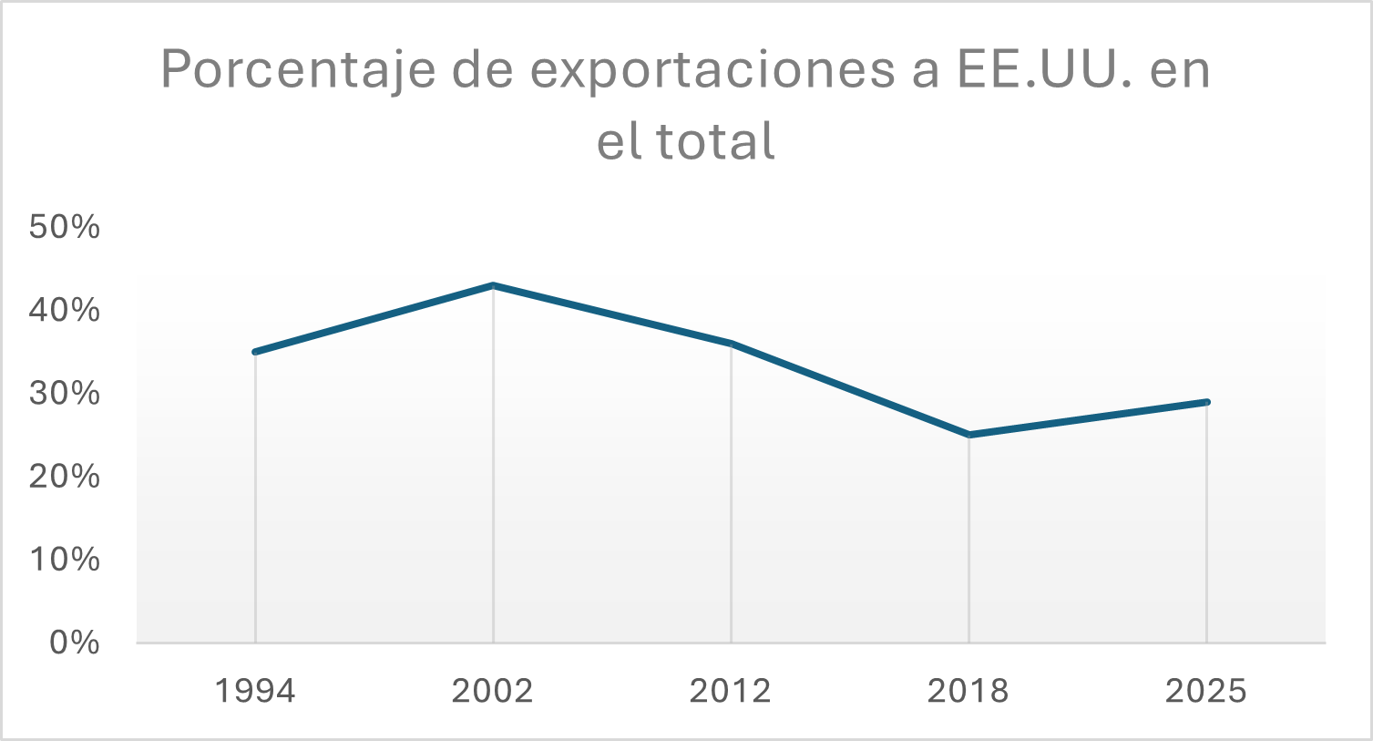 Porcentaje de exportaciones colombianas dirigidas a Estados Unidos en el total de las exportaciones colombianas.